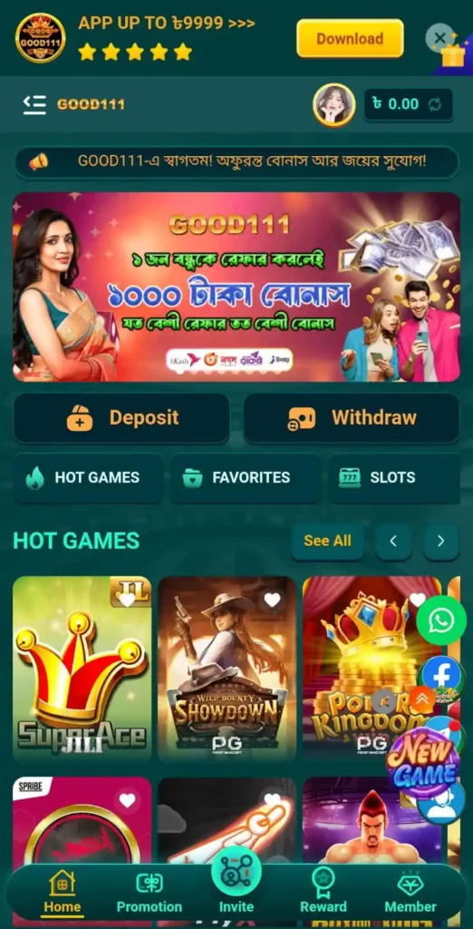 GOOD111 Game is a simple, fun, and mobile-friendly online gaming platform. It offers a variety of games, fast performance, and easy-to-use features that make playing enjoyable for beginners and experienced users alike. Daily rewards, referral bonuses, and secure transactions add to the overall experience. While some games depend on luck, the app keeps users engaged with its smooth interface and quick gameplay. Players should always play responsibly and manage their budget. Overall, GOOD111 APK provides safe, entertaining, and rewarding online gaming, making it a great choice for anyone looking for fun and excitement in one place.